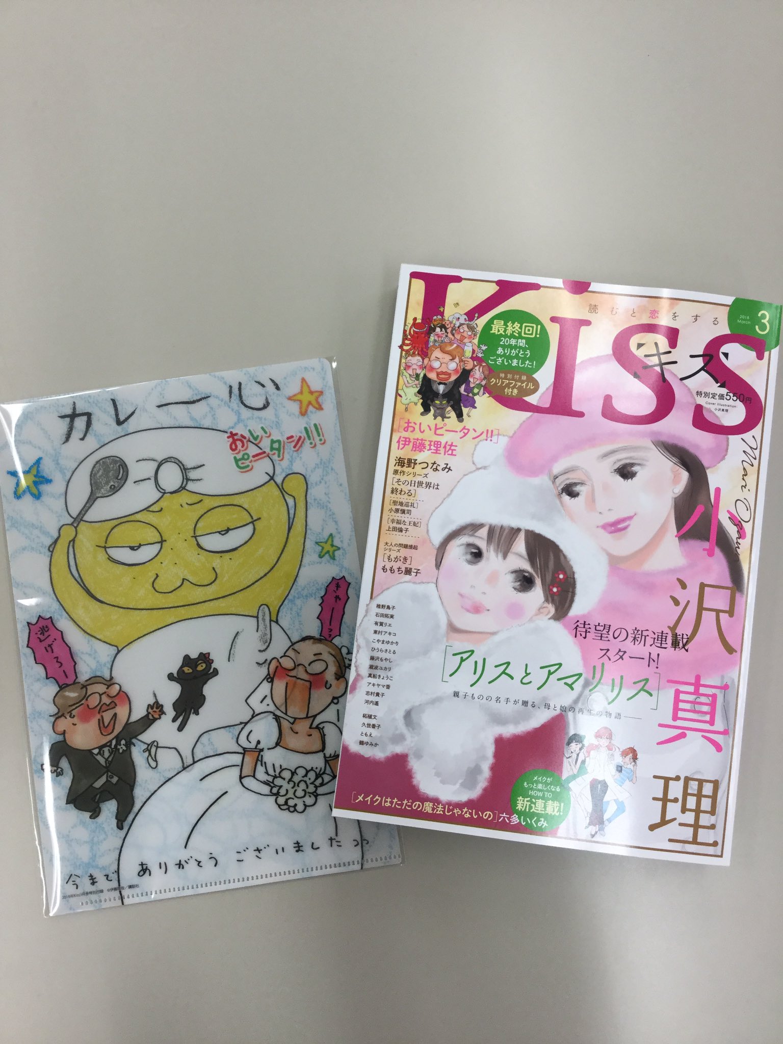 Kiss編集部 Kiss3月号本日発売 伊藤理佐 おいピータン は連載300回 Amp 最終回 特別付録のクリアファイルはなんとあのカレー心が リボンをつけたクロたんがまたいい味出してます サコ T Co R0an6t8a1f Twitter
